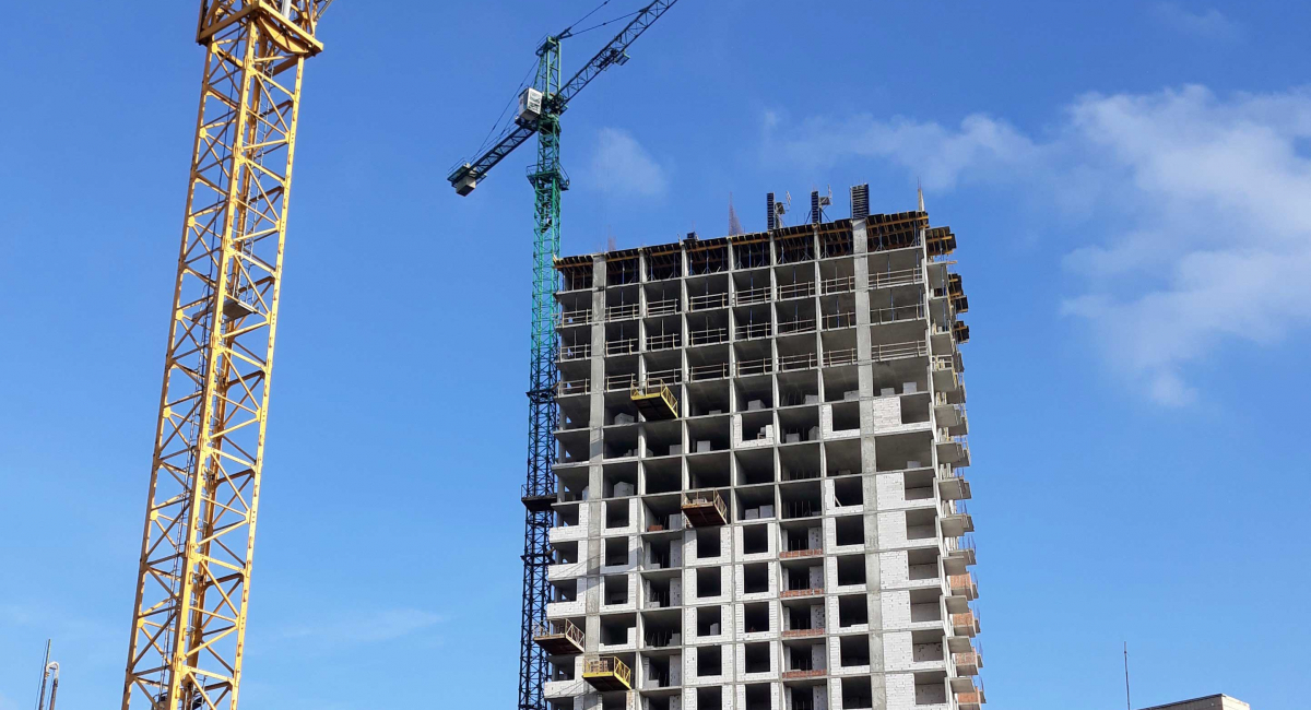 Кладка виконана на 100% по 14 поверх, з 15-го по 17-й поверх - ведуться роботи кладок.