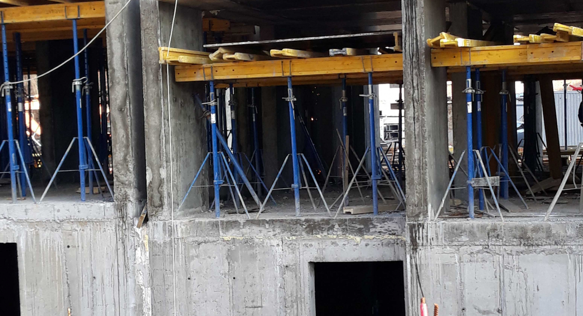2-а черга 3-й секція - виконується пристрій горизонтального перекриття 1-го поверху. Одномоментно виконується пристрій вертикальних монолітно-каркасних елементів 2-го поверху.